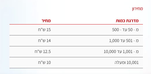 מחירי click2post של דואר ישראל (תקפים מפברואר 2025):