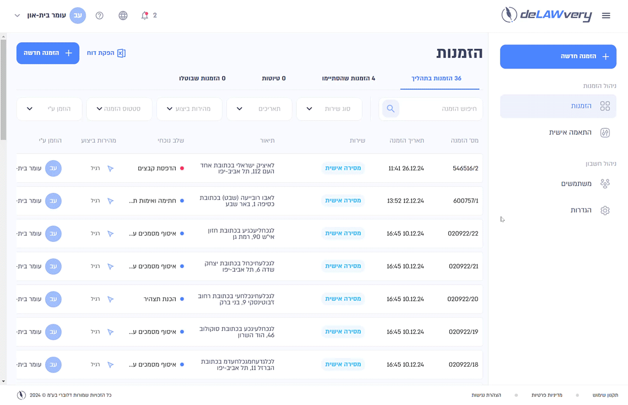 העבודה עם המערכת של דלוברי מאפשרת לי ולצוות המשפטי להישאר בשליטה ובקרה מלאה כל הזמן. אני יכול לשלוף את ה״נתקבל״ / תצהיר מוסר תוך שניות מהמערכת ולדעת בכל רגע נתון מה הסטטוס של כל הגשה או מסירה אישית.